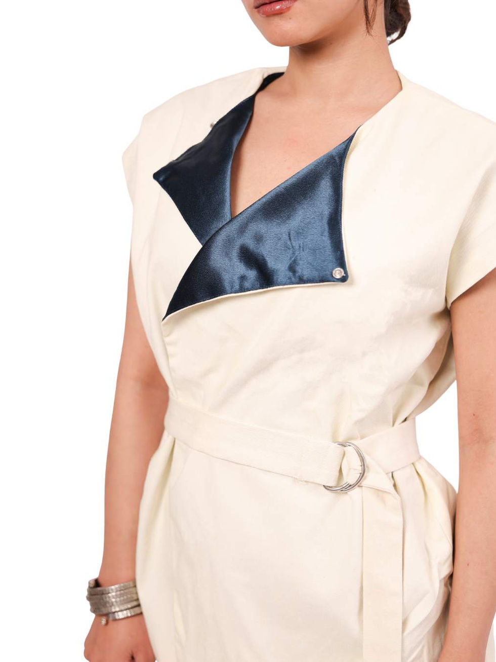 Finished with a subtle contrast inner facing that reveals itself through movement, the jacket plays with structure and softness in equal measure. Wear it layered over dresses, skirts, or tailored bottoms to introduce a refined yet contemporary edge to everyday dressing.
